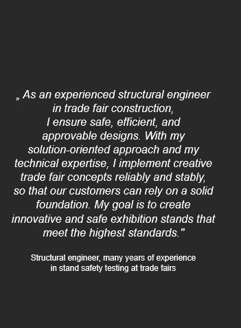 Our team combines expertise in design, architecture, event management, and structural design – creating appearances that inspire and leave a lasting impression. We unite a trained eye for detail with a clear sense of the bigger picture. Every concept reflects our belief that function and aesthetics are inseparable. We place great importance on personal consultation and genuine, collaborative partnerships. Our strength lies in the architectural and structural realization of your vision – precise, individual, and driven by passion